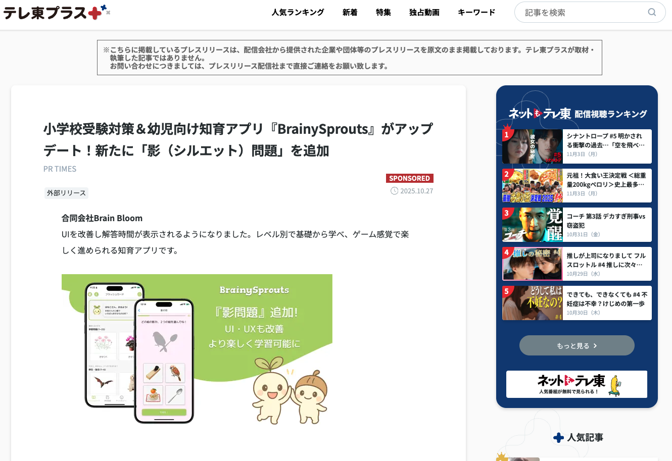 【小学校受験対策&幼児向け知育アプリ BrainySprouts】の姉妹アプリ