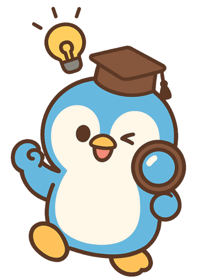 探検が大好きなペンギンのぺんたんは、ことっぴの相棒です。 小さな博士帽と虫めがねを持って、「ことば」を探すのが得意です。元気いっぱいでちょっぴりおっちょこちょい。見つけたことばを ことっぴに調べてもらうのが楽しみです。